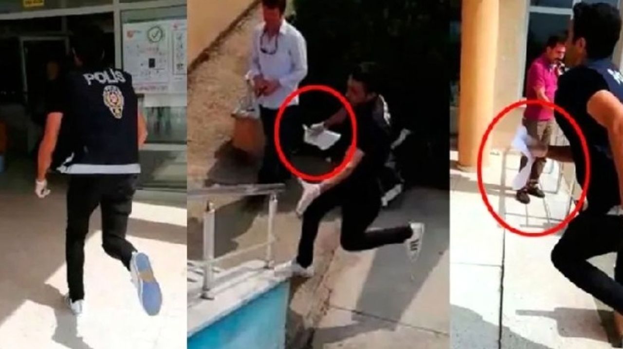 Kapıların kapanmasına saniyeler kala okulun bahçesine koşarak gelen polis, evrağı kendi elleriyle sınava girecek öğrenciye teslim etti.İHA