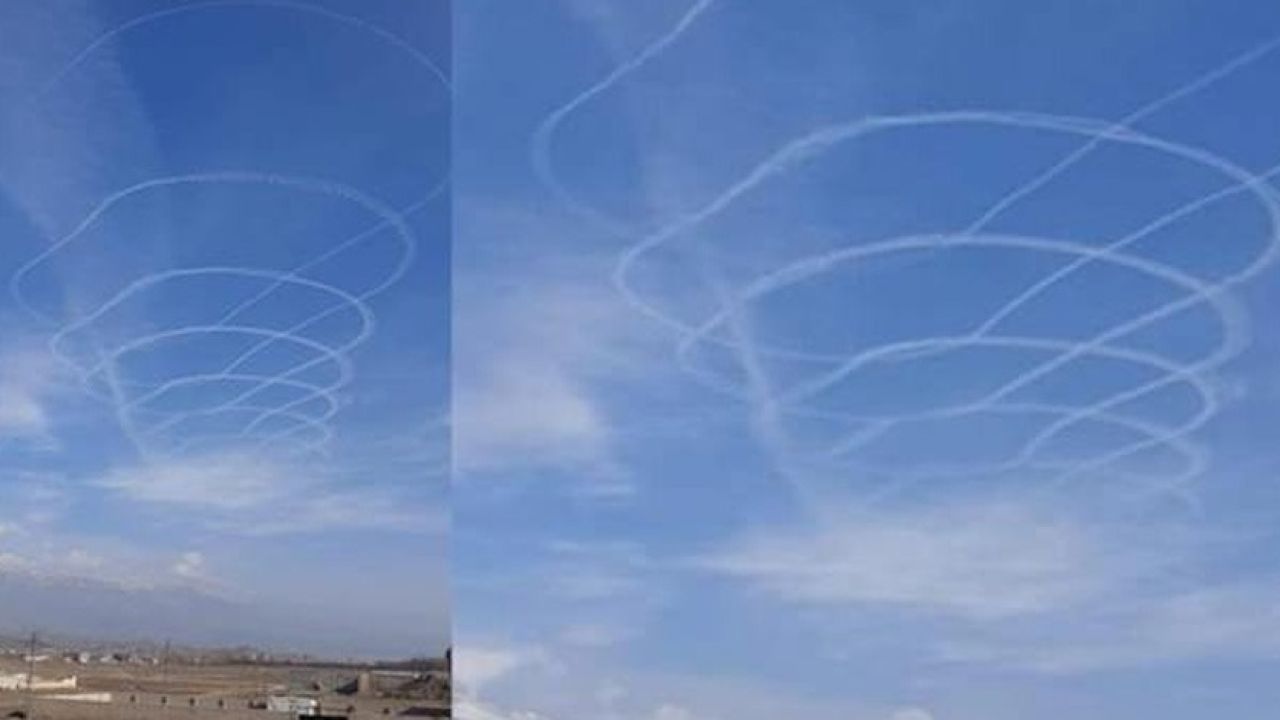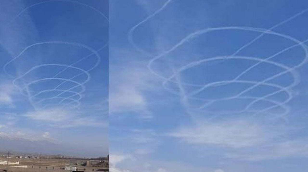 Ağrı'nın Doğubayazıt ilçesindeki Türkiye ile İran sınırı arasında bulunan küçük Ağrı Dağı mevkiinde bugün öğle saatlerinde beliren uçak, yaklaşık 1 saat boyunca bölgede uçtu. Zaman zaman alçak uçuş yapan uçak, kavisler çizdi. Uçağın bıraktığı kuyruk izi ise gökyüzünde ilginç görüntüler oluşturdu. İzler, Doğubayazıt ilçesinden ilgiyle izlendi.