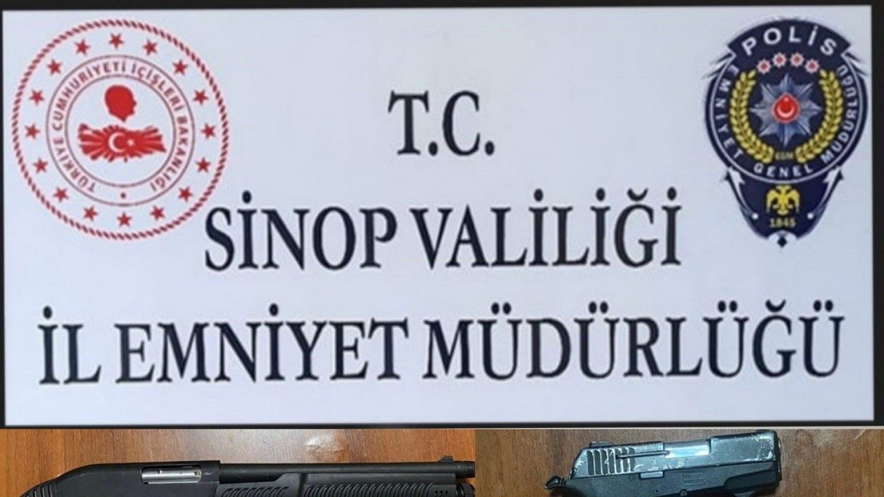 Sinop İl Emniyet Müdürlüğü Asayiş Şube Müdürlüğü ekiplerince yapılan şok uygulamada üst araması yapılan şahıslarda 1 adet ruhsatsız tabanca, 1 adet tüfek, 5 adet mermi ele geçirildi. 2 şüpheli şahıs hakkında gerekli yasal işlemler başlatıldı.