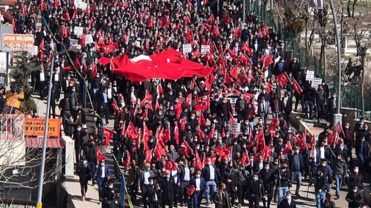 "Şırnak teröre karşı omuz omuza", "Şehitler canlarımızdır", "PKK bitecek, acı dinecek" yazılı dövizler ile Gara'da şehit edilen Türk vatandaşlarının fotoğraflarını taşıyan katılımcılar, "Kahrolsun PKK", "Şehitler ölmez, vatan bölünmez" sloganı atarak Atatürk Mahallesi'ndeki Sanat Sokağı'na kadar yürüdü.