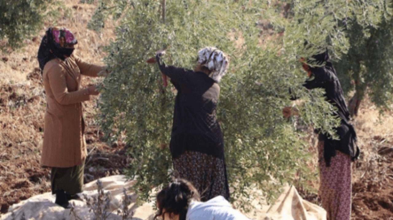 Meryem Akar da "Zeytinleri silkeliyoruz. Yere düşenleri çuvala koyuyoruz. Sonra işte biz batıda çalışacağımıza gidip kendi köyümüzde kendi katkılarımızı sağlıyoruz. Ailemize destek oluyoruz. Kendi köyümüzde çalışıyoruz" diye konuştu.
