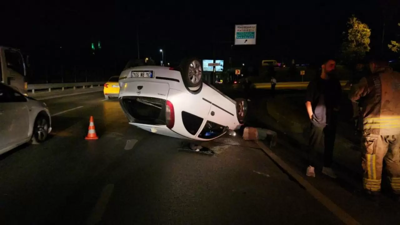 Şişli'de sürücüsünün alkollü olduğu iddia edilen araca arkadan başka bir araç çarparak kaçtı. Çarpmanın etkisiyle araç kaldırıma çarparak takla atarken, şans eseri sürücünün burnu bile kanamadı.