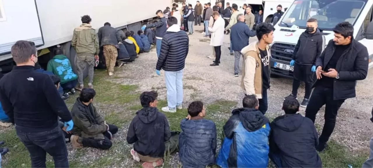 Minibüste yasa dışı yollarla Türkiye'ye giren 10 düzensiz göçmen yakalanırken, araç sürücüsü gözaltına alındı.