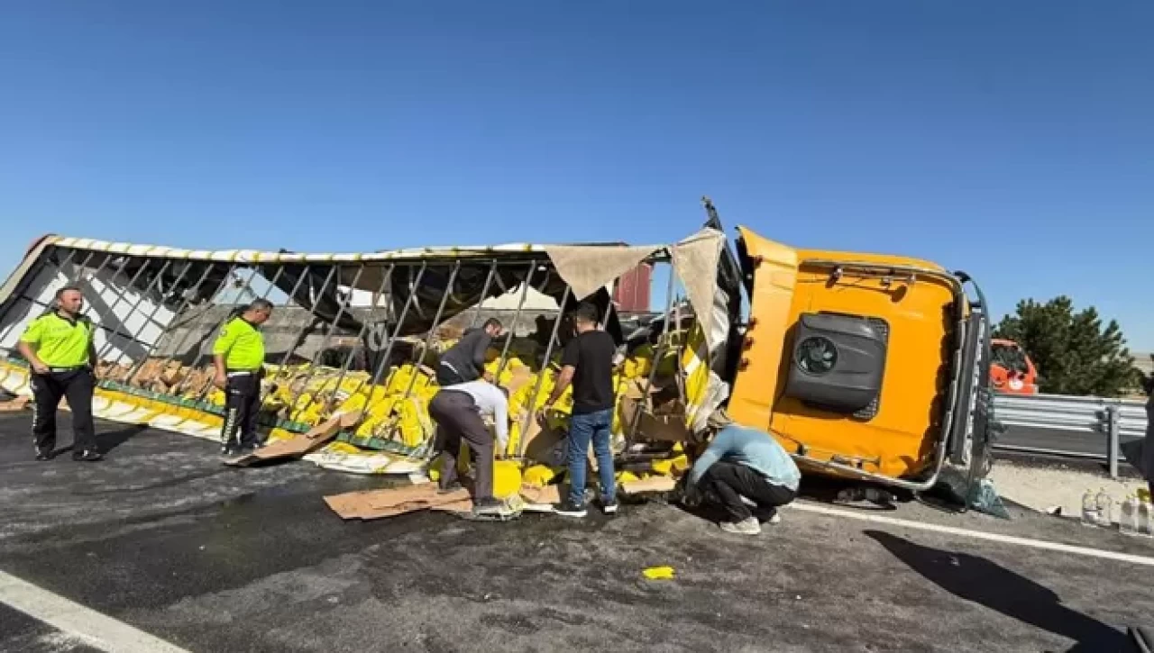 Kazada ölen ya da yaralanan olmazken aracın dorsesinde koliler ile taşıdığı yüzlerce kutu sıvı yağ çevreye dağıldı.