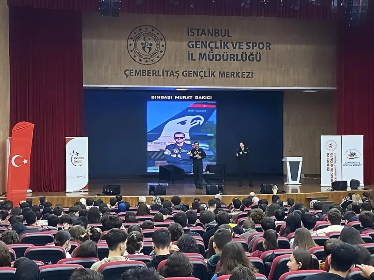 Müdürlükten yapılan açıklamaya göre, Çemberlitaş Gençlik Merkezi'nde düzenlenen etkinlikte SOLOTÜRK pilotları, gösteri uçuşlarının nasıl hazırlandığını, modern savaş uçaklarının yüksek manevra kabiliyetlerini, pilotaj eğitimi süreçlerini ve uçuş sırasında karşılaşılan fiziksel zorlukları detaylı şekilde anlattı.