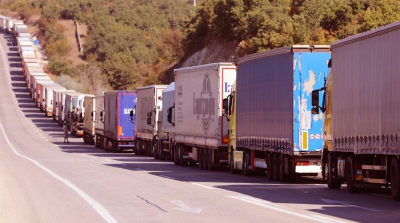 İhracat yükü taşıyan yaklaşık 800 tır, Hamzabeyli Sınır Kapısı önünde yurt dışına çıkmak için işlemlerinin tamamlanmasını bekliyor.