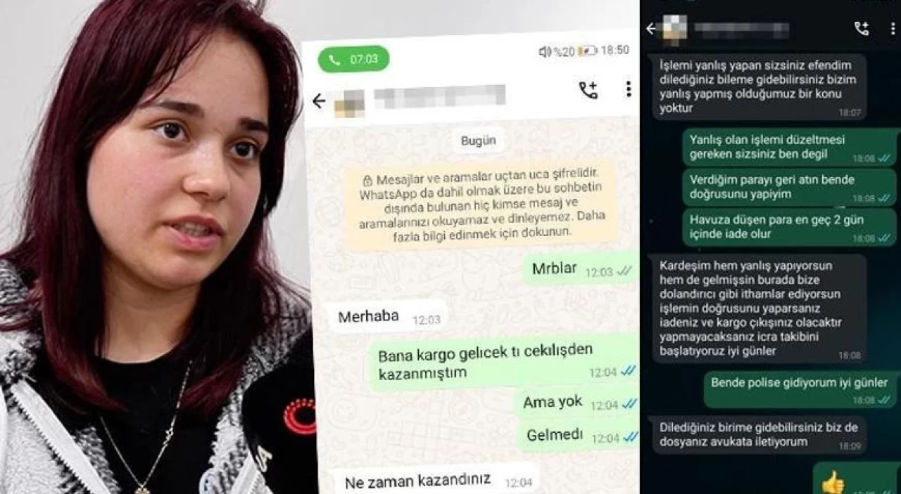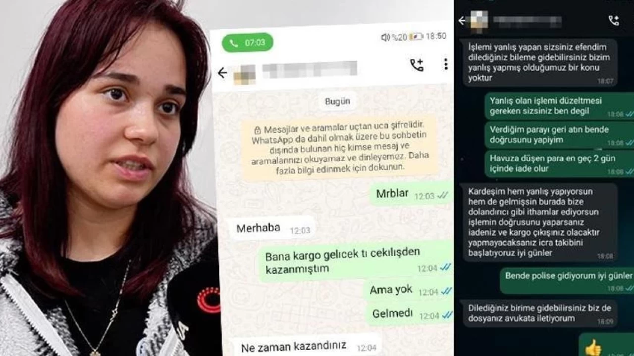 Genç kıza çekilişi kazandığını ve telefonu göndereceklerini söyleyen dolandırıcılar ilk başta kargo parası daha sonra ise vergi parası diyerek genç kızdan 10 bin TL aldı. Dolandırıldığını anlayan genç kız durumu ailesine bildirerek tekrar dolandırıcılarla iletişime geçtiğinde küfür ve hakaretlere maruz kaldı.