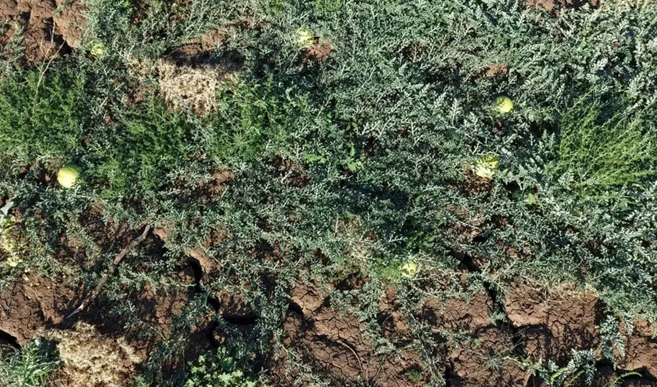 Kuruyan gölet yatağında kendiliğinden yetişen karpuzlar ise dikkat çekici bir görüntü oluşturdu.