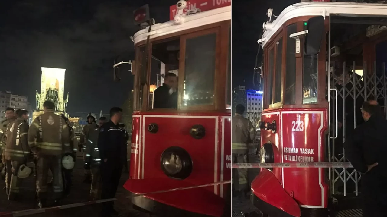 Taksim'de nostaljik tramvayda çıkan yangın söndürüldü.