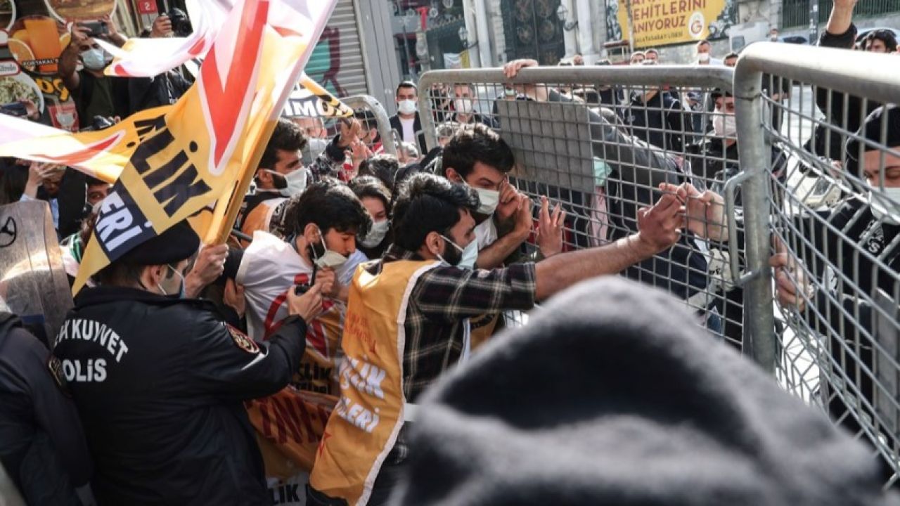 Polis bariyerlerini devirerek Galatasaray Meydanı girişine gelen eylemcilere polis müdahale etti. Eylemciler polis tarafından gözaltına alındı.