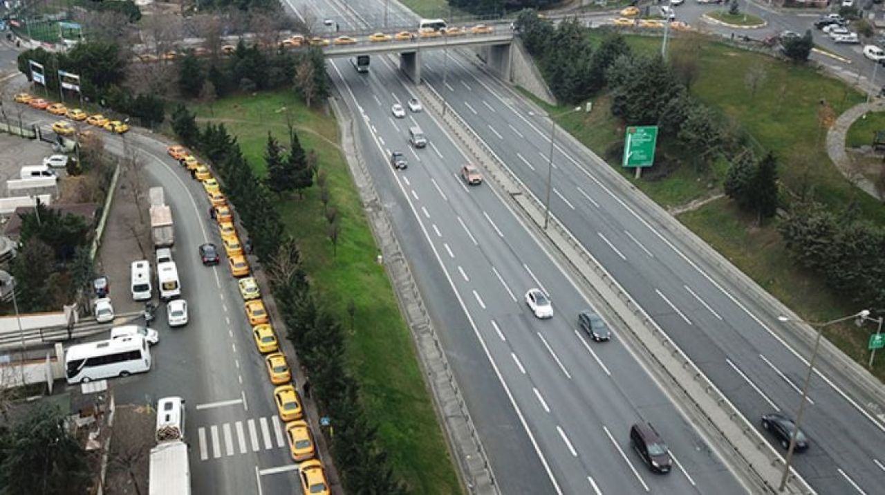 İstanbul Büyükşehir Belediyesi (İBB), Ulaşım Koordinasyon Merkezi (UKOME) kararıyla, taksilerde açılış ücreti 5.55 liradan 7 liraya, kısa mesafe 14.50 liradan 20 liraya, kilometre başına 0.34 liradan 0.45 liraya, bekleme ücreti 0.53 liradan 0.80 liraya yükseltildi. Taksi şoförleri taksimetrelerini güncellemek için Bağcılar'daki belirlenen noktaya geldi. Dün sabah saatlerinde başlayan taksimetre nöbeti ise bugün de devam etti. Yaklaşık 12 saattir bekleyen taksiciler, uzun kuyruklar oluşturdu. Taksi kuyruğu havadan da görüntülendi.