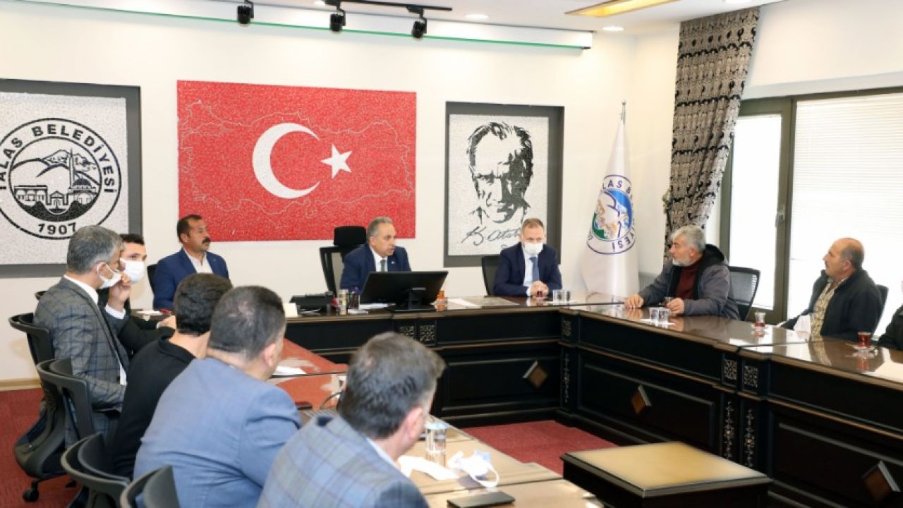 Toplantıda başta toplu taşıma olmak üzere Malatya yolu Kepez kavşağının yanı sıra Talas Belediyesi tarafından yapımı sürdürülen ve 8 mahalleye geçiş sağlayacak olan yeni yol ile okul ve 2022 yılı yatırımları değerlendirildi.