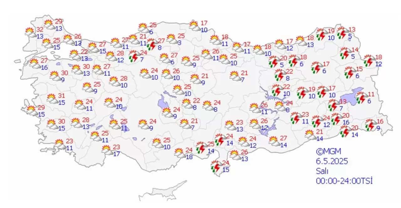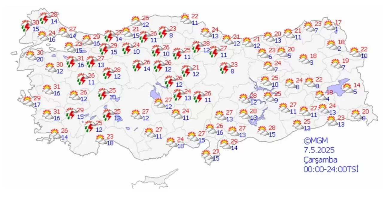 İstanbul 21, Ankara 20, İzmir 26, Bursa 23 derece.