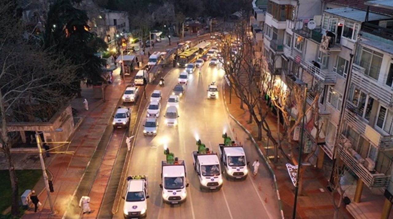 Çin’de ortaya çıkan, tüm dünyayı etkisi altına alan ve Türkiye’de de ölümlere yol açan ‘Covid 19’ salgınına karşı ilk günden itibaren yoğun bir çalışma başlatan Bursa Büyükşehir Belediyesi özellikle dezenfeksiyon çalışmalarını kesintisiz sürdürüyor. Sağlık İşleri Dairesi Başkanlığı Veteriner Hizmetleri Şube Müdürlüğü tarafından yürütülen, 32 araç, 82 ekipman ve 69 personelle yapılan çalışmalarda, yerli ve yabancı turistlerin uğrak yeri olan sultan külliyeleri, tarihi çarşı ve hanlar, türbeler selatin camileri, kamu kurumları, otobüs durakları, toplu taşıma araçları, taksi ve dolmuşlar ve alt geçitler periyodik olarak dezenfekte ediliyor.