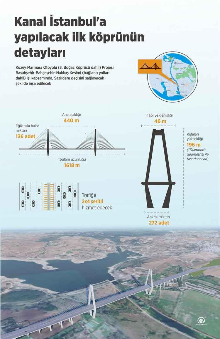 Cumhurbaşkanı Recep Tayyip Erdoğan'ın, İstanbul Büyükşehir Belediye Başkanlığından itibaren "rüyası" olduğunu belirttiği ve Başbakan iken 27 Nisan 2011'de "çılgın proje" olarak kamuoyuna duyurduğu, İstanbul'u içinden 2 deniz geçen bir şehre dönüştürecek Kanal İstanbul, ilk köprünün temelinin atılmasıyla fiilen hayata geçirilmeye başlanacak.