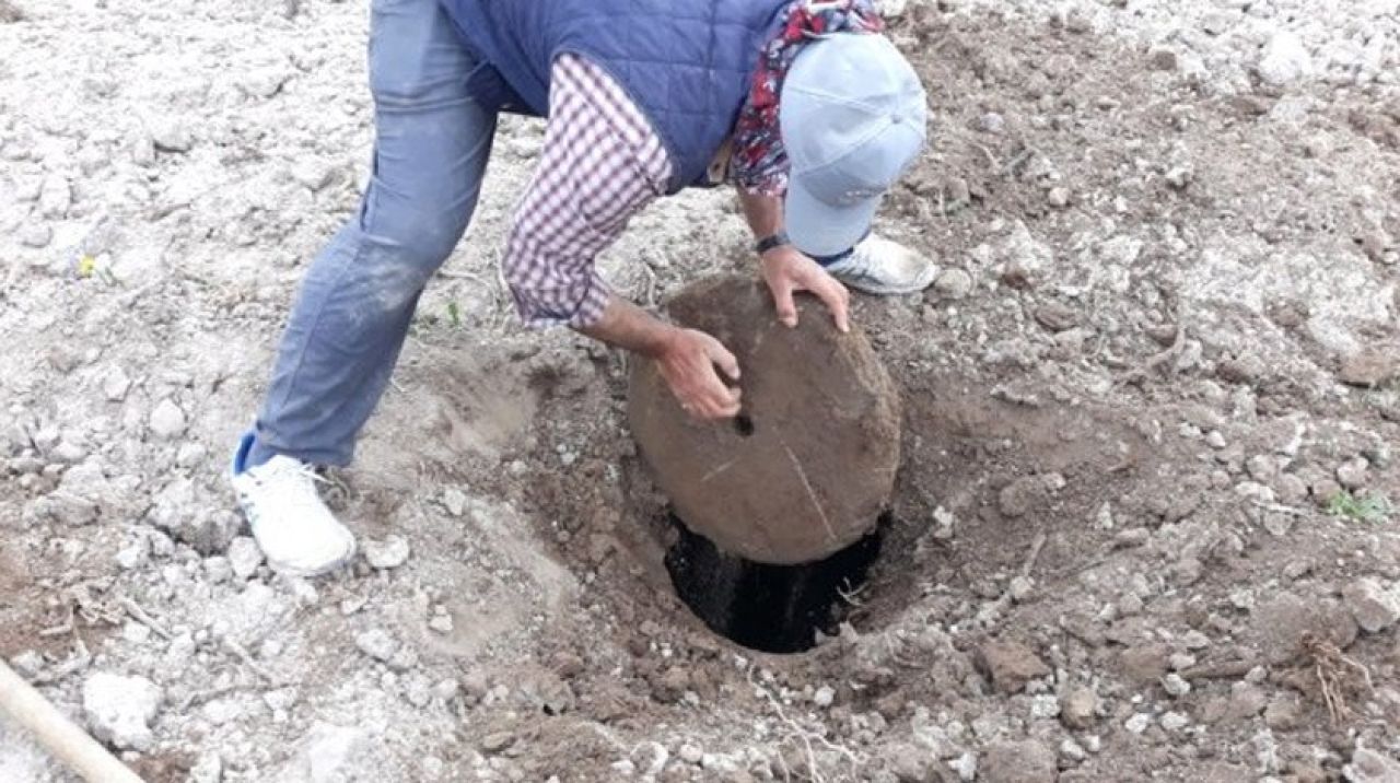 Nevşehir'in Acıgöl ilçesine bağlı Tatlarin kasabasında bir vatandaş tarlasının sürerken Romadöneminden kalma 2 bin yıllık pitos buldu.