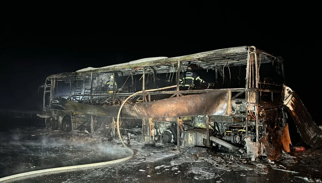 Tarsus-Adana-Gaziantep (TAG) otoyolunda seyir halindeyken yangın çıkan yolcu otobüsü kullanılamaz hale geldi.