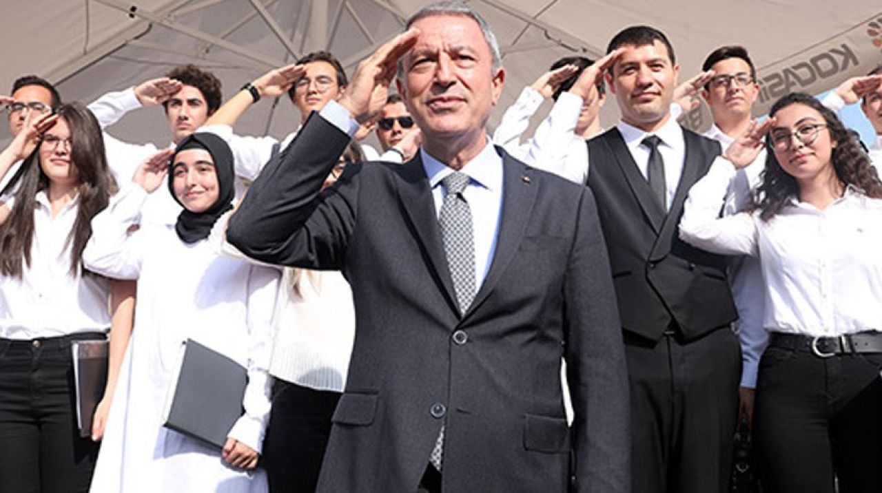 Okulun konferans salonuna girişinde ise öğrenciler tarafından Bakan Akar'a sürpriz yapıldı. Bir ağızdan okul marşını okuyan öğrenciler asker selamı verdi. Akar da asker selamı ile karşılık verdiği öğrencilerin söylediği okul marşına eşlik etti.