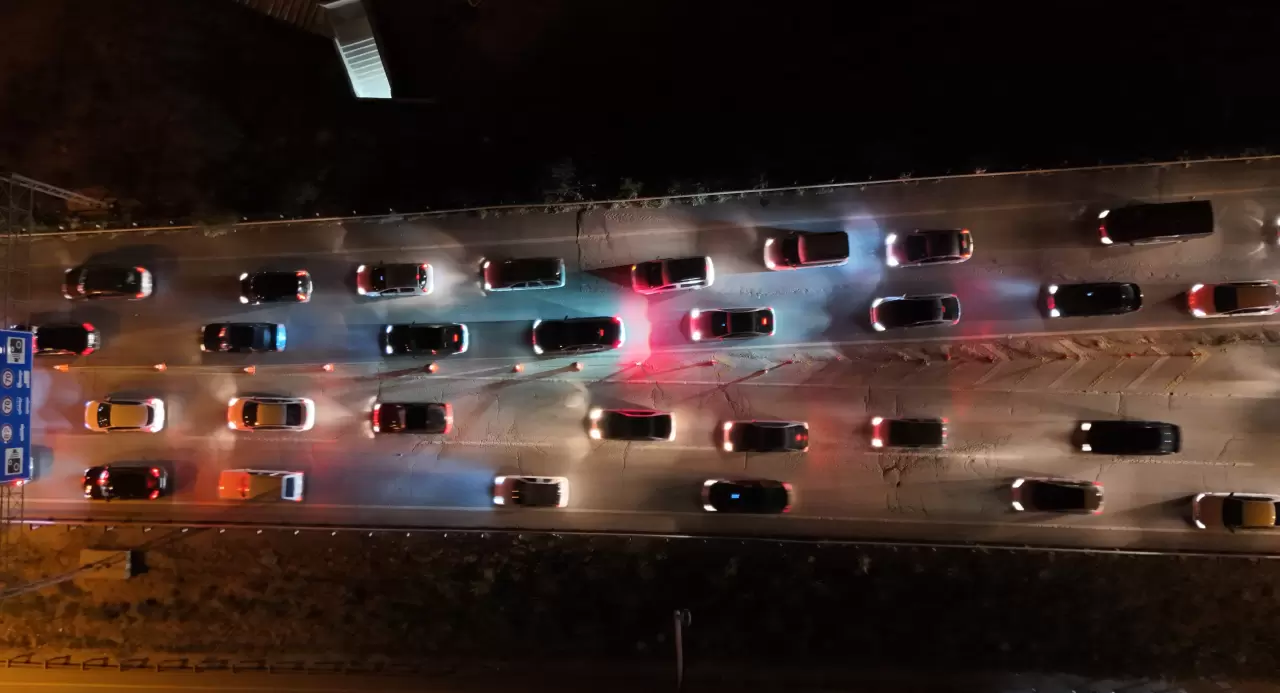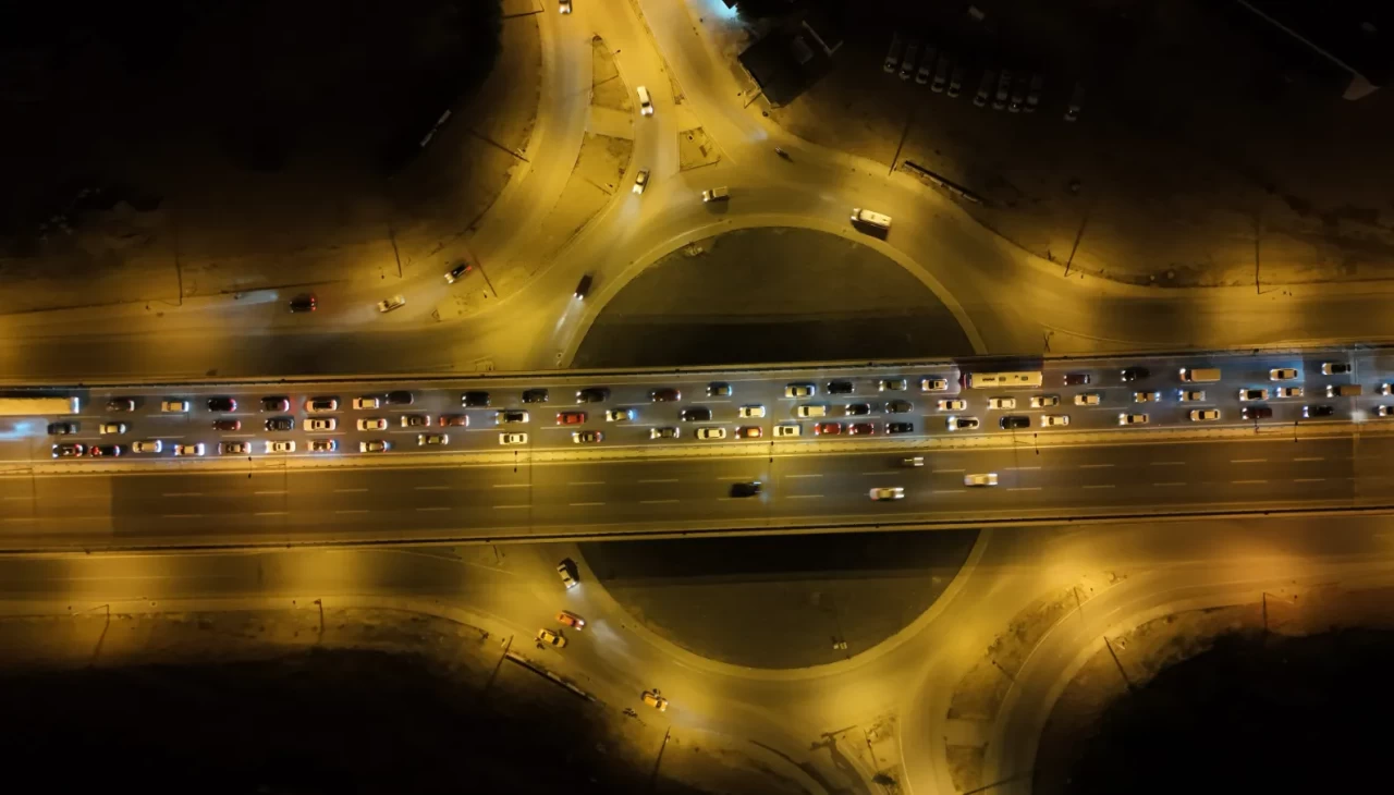 43 ilin geçiş güzergahında bulunan "kilit kavşak" Kırıkkale'de, Kurban Bayramı tatilinin son gecesinde trafik yoğunluğu havadan görüntülendi.