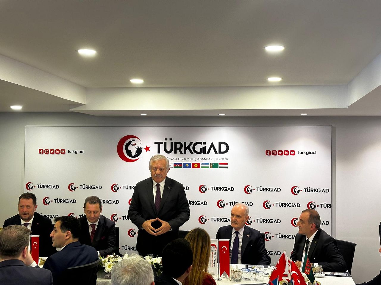 İstanbul ticaret odası başkanı milletin değerleri ile barışık daima millet iradesinden yana tablo koymuş çok değerli bir başkanımı bu tercihlerini kullanırken Türkiye’de bir sürü insanın milletin değerleri ile çatışmanın bir değer olduğuna inandığı hatta milletin değerleri ile çatışınca aydın olunacağının söylendiği 28 Şubat baskıları antidemokratik baskılara karşı direnen bir karakter olarak bildiğimiz başkanımızı aramızda görmekten mutluluk duyuyorum. Kendisinin ifadesiyle Türk dünyası girişimci adamlar derneğine girmişler. Türkiye kalkınmış bir ülkedir Türkiye büyük problemlerini çözmüş bir ülkedir büyük bir gururla ifade etmek isterim ki dünyanın her yerinde iş yapanımız var dünyanın bütün kalkınmış ülkelerinde iş yapanımız var Afrika’da iş yapanımız var dünyanın her doğu ülkelerinde iş yapanımız var. Yani bizim çok müteşebbis bir ruhumuz var. Türk dünyasında da çok ciddi işler yapılıyor