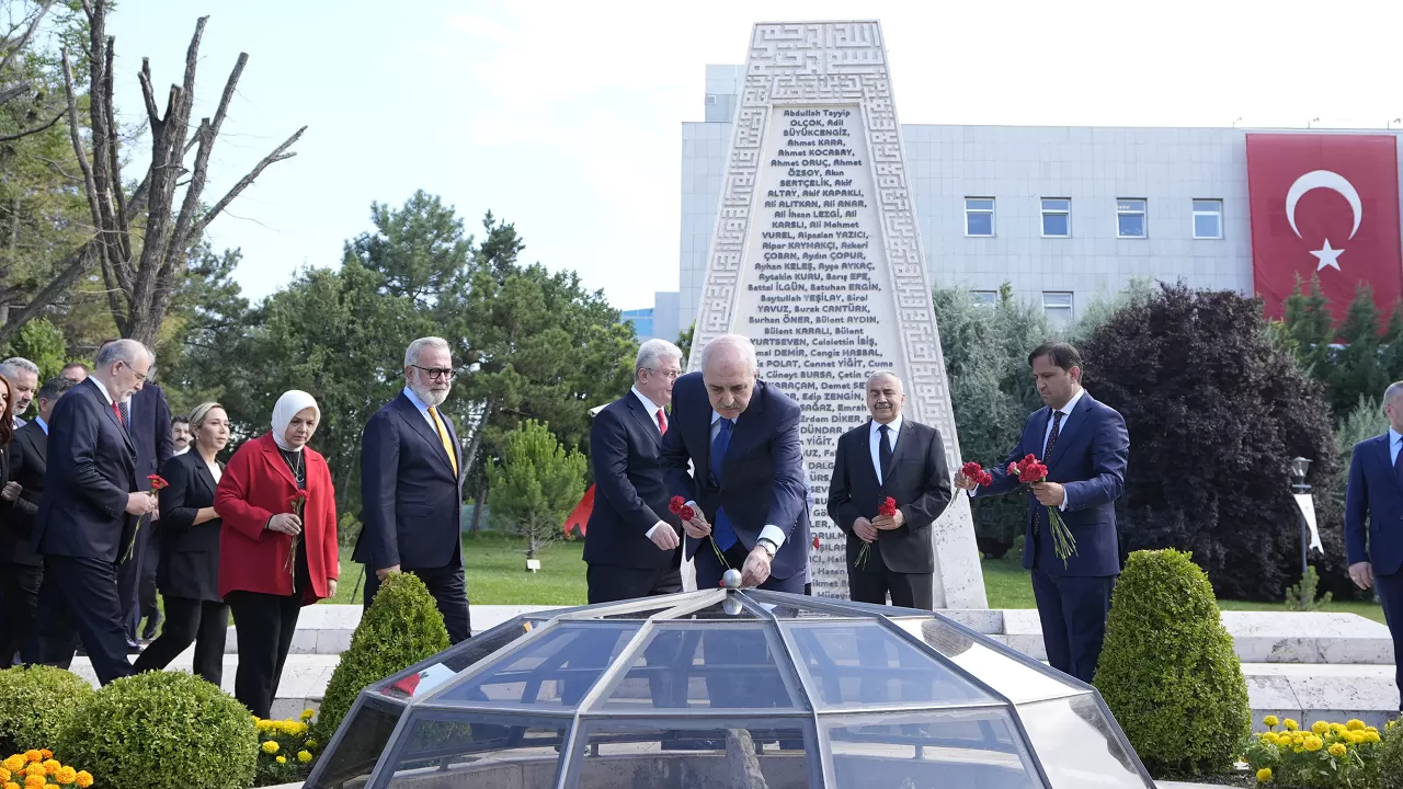 Kurtulmuş ve beraberindekiler, FETÖ mensuplarınca 15 Temmuz 2016 gecesi TBMM'ye atılan ilk bombanın düştüğü alanda bulunan anıta karanfil bıraktı. Kurtulmuş, o gece şehit düşen vatandaşlar için dua etti.