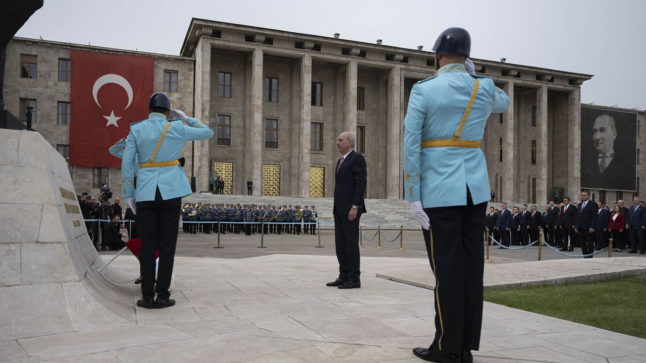 TBMM Başkanı Numan Kurtulmuş, 23 Nisan Ulusal Egemenlik ve Çocuk Bayramı münasebetiyle beraberindeki heyetle Anıtkabir'e ziyarette bulundu.
