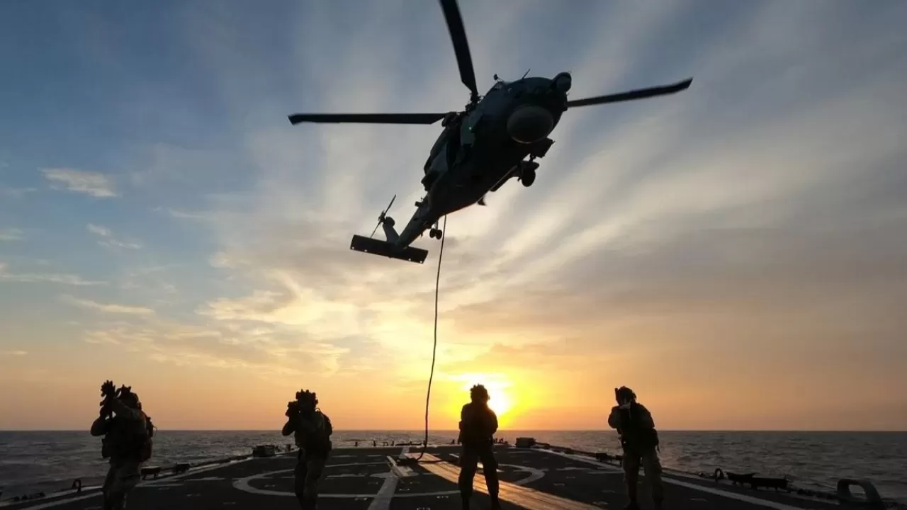 Bakanlıktan yapılan açıklamada, "Türk Deniz Görev Grubu görevine iştirak etmekte olan TCG GÖKSU fırkateynimiz, 22 ve 28 Ağustos 2024 tarihlerinde Libya açıklarında SAT personelinin de katılımıyla helikopter iniş/kalkış eğitimleri icra etti." bilgisine yer verildi.
