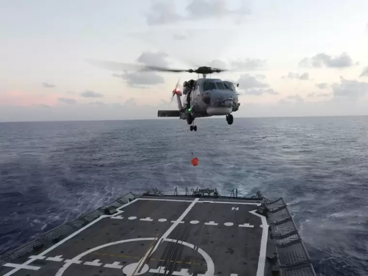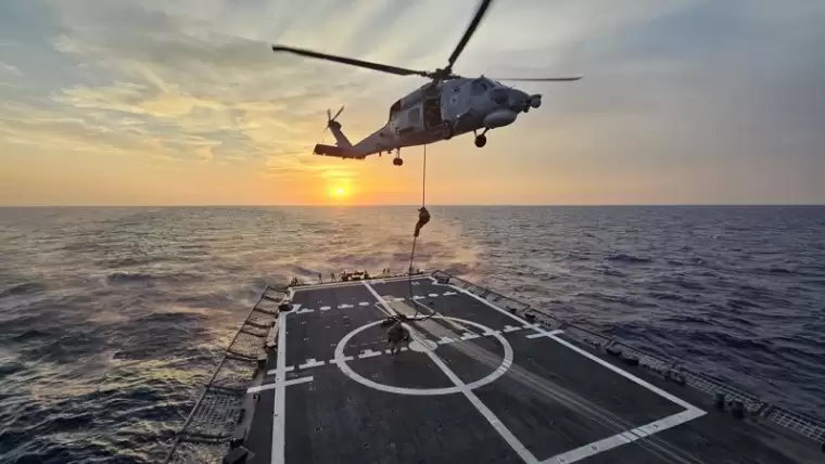 MSB tarafından paylaşılan görüntülerde, Türk Deniz Görev Grubu görevine katılan TCG GÖKSU fırketeyninde Libya açıklarında helikopter iniş/kalkış eğitimlerinin gerçekleştirildiği ifade edildi.