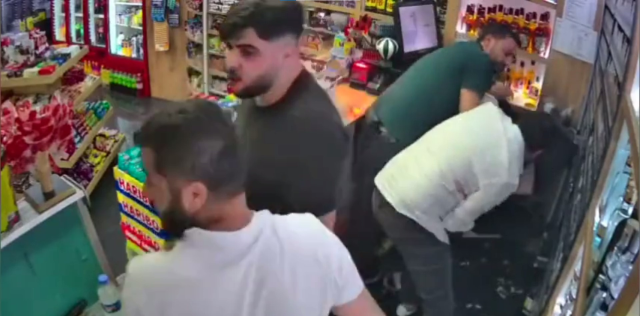 Görüntülerde, 3 kişi iş yerinde konuşurken, 4 kişi içeri giriyor. Yeşil tişörtlü biri ile iş yeri çalışanı arasında tartışma çıkıyor. Saldırganlardan birinin 'Babanı çağır konuşalım' dediği duyulurken, iş yeri çalışanını, "Şimdi böyle niye geldiniz bana bir söyleyin" diye yanıt veriyor. Beyaz gömlekli saldırgan ise, "Baban bir şey paylaşmış, çağır konuşalım" diyor. Kasada duran çalışan, "Babam ne paylaşmış söyleyin" diye yanıt verdikten sonra, saldırganlardan birinin "Sen bilmiyor musun?" dediği duyuluyor. Tartışma esnasında yeşil tişörtlü saldırganın iş yeri çalışanının omzunu sıkmasının ardından, iş yeri çalışanı ile yeşil tişörtlü saldırgan arasında arbede çıkıyor. Arbede sırasında iş yeri çalışanı kasada bulunan silahı alarak, yeşil tişörtlü saldırganın ayaklarına ateş ediyor. O sırada saldırganlar şişelerle kasada bulunan kişiye saldırıyor. Beyaz gömlekli saldırgan üzerinde bulunan silahı çıkararak önce iş yeri çalışanına defalarca ateş ediyor. Ardından da iş yerinde bulunan iki kişiye daha ateş ediyor.