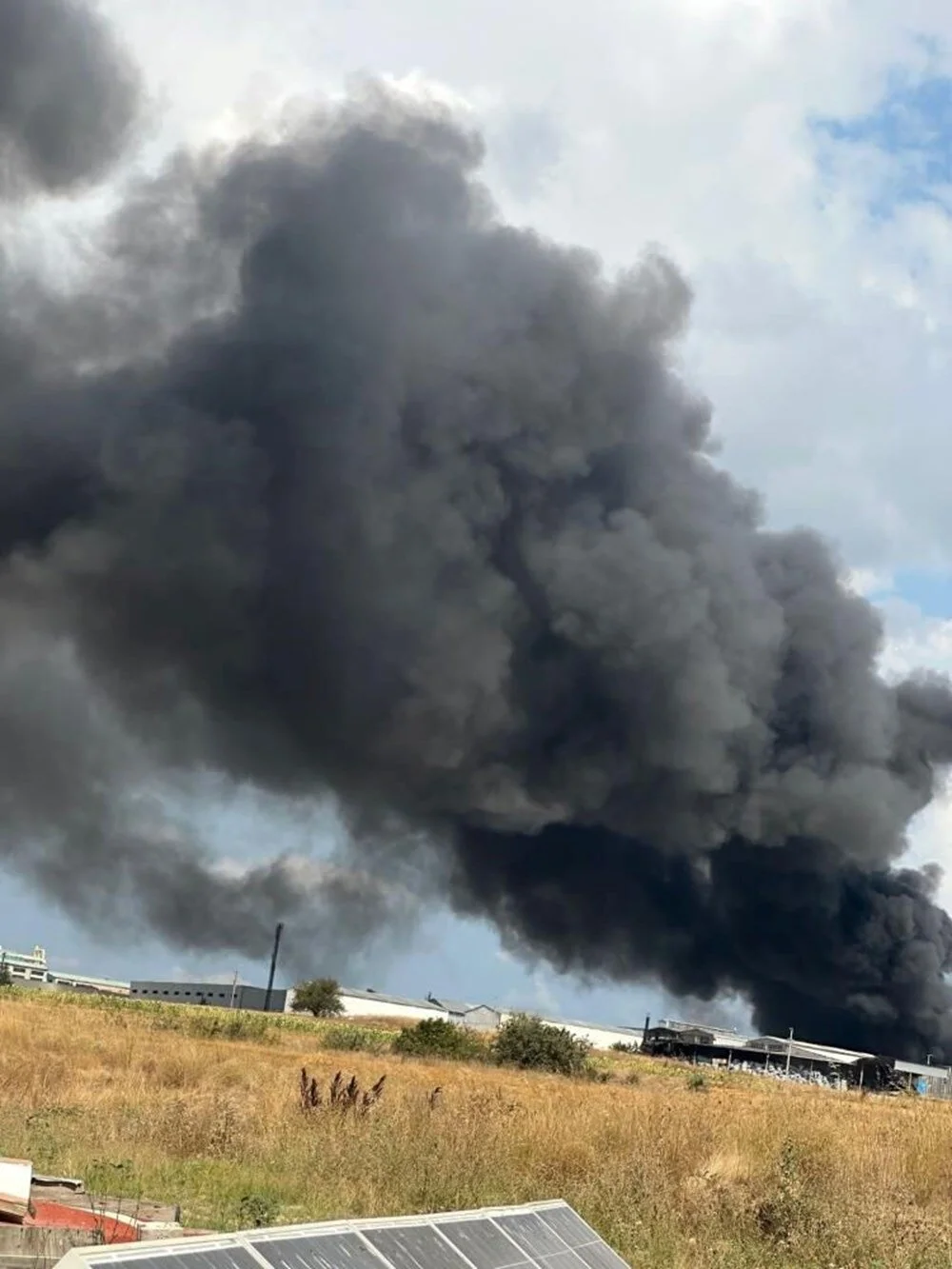Gökyüzünü dumanların kapladığı yangında zaman zaman patlamalar yaşanırken itfaiye ekipleri yangını kontrol altına almaya çalışıyor.
