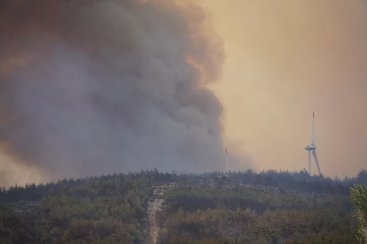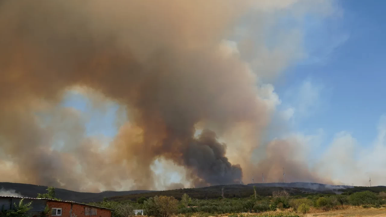 Bölgedeki şiddetli rüzgarla büyüyen yangın, ekiplerin müdahalesini zorlaştırıyor.