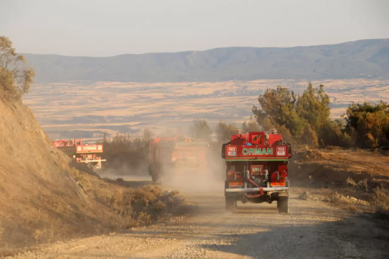 Arazöz, itfaiye araçları ve su tankerleri bölgede çalışmalarını sürdürüyor.