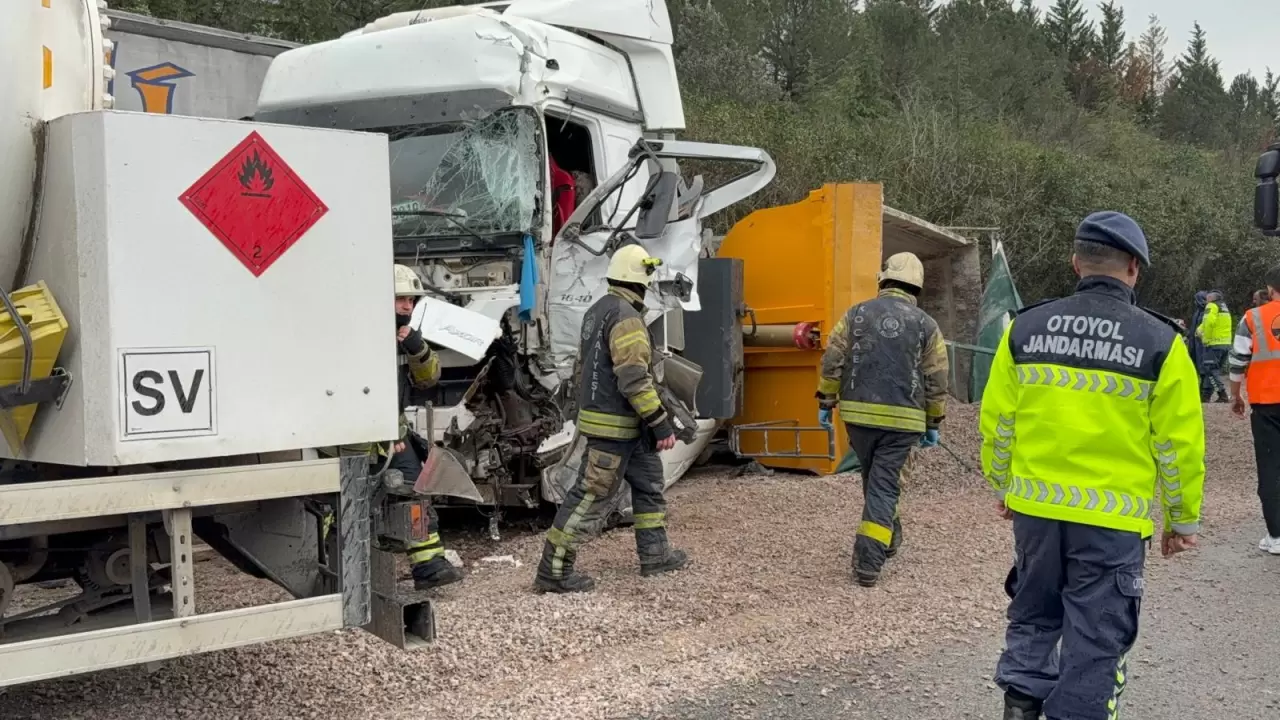 Edinilen bilgiye göre, LPG tankeri, biri mıcır yüklü olmak üzere iki tır ve otomobilin karıştığı kaza meydana geldi.