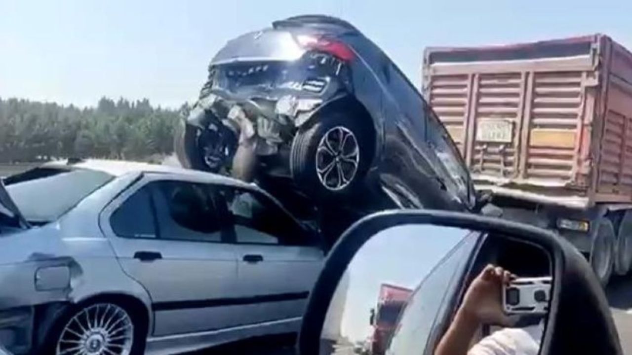 TEM Otoyolu Büyükçekmece mevkii Edirne istikametinde saat 13.00 sıralarında meydana gelen kazada edinilen bilgiye göre, sürücüsünün direksiyon hakimiyetini kaybettiği tır, önünde bulunan 3 otomobil, hafif ticari araç ve kamyonete çarptı.