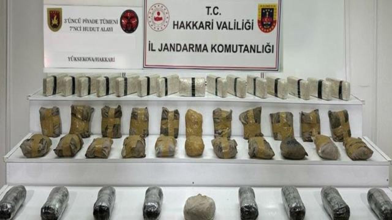Hakkari hudut hattında Jandarma ekipleri tarafından uyuşturucu operasyonu düzenlendi. MSB’den edinilen bilgiye göre Jandarma ekiplerini tarafından yapılan arama tarama faaliyetlerinde 3 çuval içerisinde 46 paket 47.500 gram toz eroin ve 8.500 gram metamfetamin uyuşturucu madde ele geçirildi.