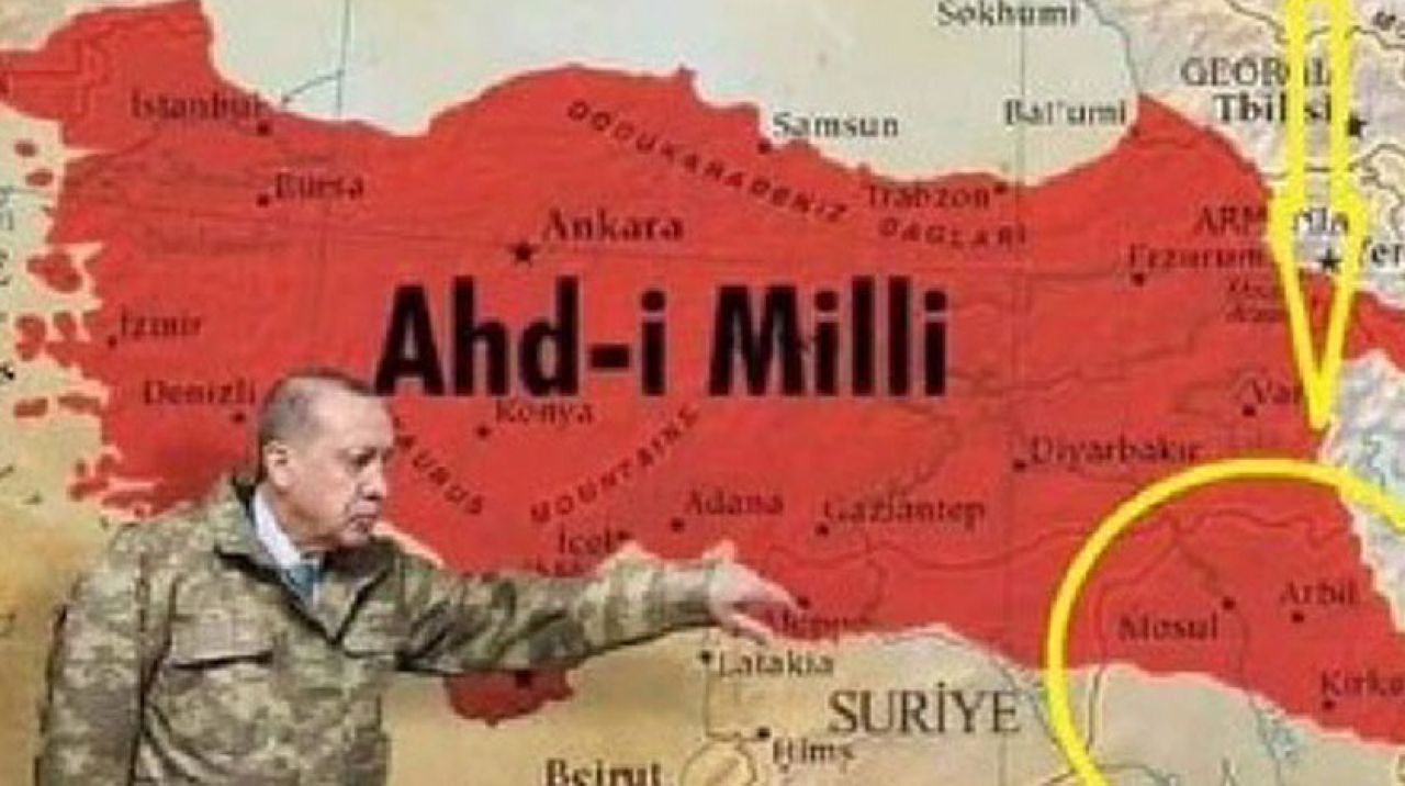 Dezenformasyon yapmaya çalışan YPG/PKK yanlıları, Cumhurbaşkanı Recep Tayyip Erdoğan'ın Zeytin Dalı Harekatı sırasında bir harita önünde çekilmiş, Anadolu Ajansının (AA) servis ettiği fotoğrafını kırparak, Suriye ve Irak'ın kuzeyindeki toprakları kapsayan Türkiye haritasının üzerine monte etti.