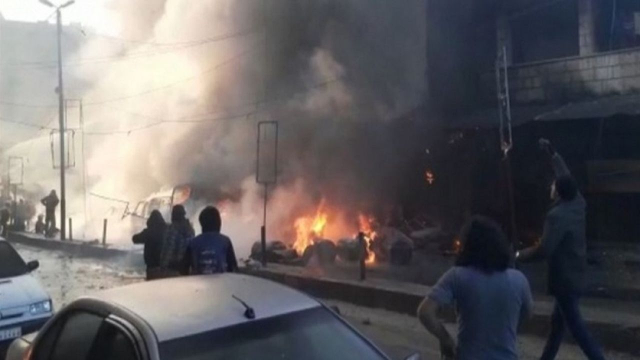 Halep'in Afrin ilçesinin merkezinde, Racu yolu olarak bilinen caddeye park edilen bomba yüklü araç infilak etti.