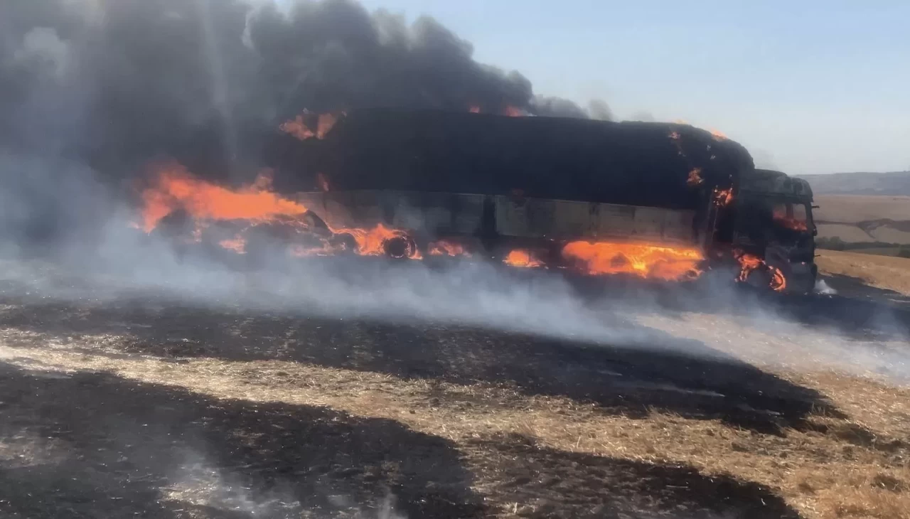 Yenice Mahallesi kırsalı Kuştepe mevkisinde tarlada bağlanmış saman balyaları tıra yüklendi. Yüklemenin tamamlandığı sırada tırın altındaki samanlar henüz bilinmeyen bir nedenle tutuştu. Kısa sürede büyüyen yangın sonrası tır alev topuna döndü.