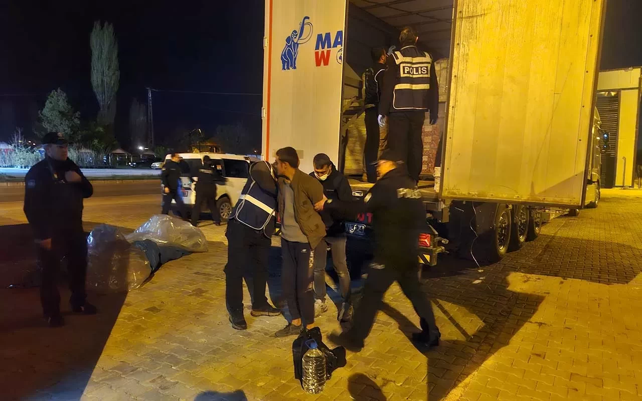 Polis ekipleri tır sürücüsü M.Y'yi (44) gözaltına alındı. Düzensiz göçmenler İl Göç İdaresi Müdürlüğüne teslim edildi.