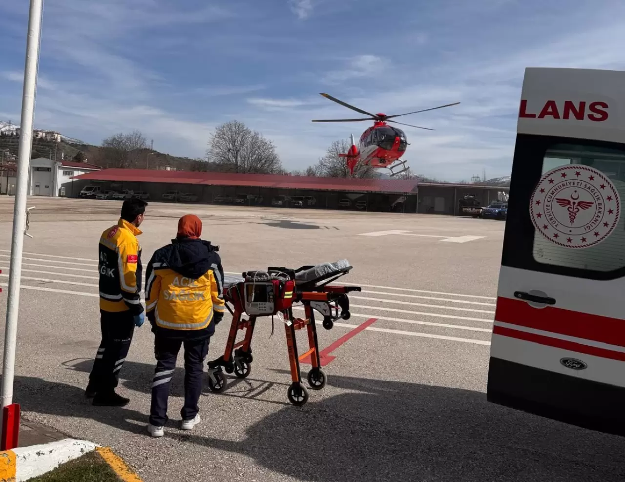Bölgede etkisini sürdüren yoğun kar yağışı nedeniyle kara yolu ulaşımının kapalı olması üzerine, İl Sağlık Müdürlüğü Ambulans Servisi Başhekimliği koordinasyonunda hızla harekete geçildi. Vakanın aciliyeti göz önünde bulundurularak köye kara ambulansı yerine ambulans helikopter sevk edildi.