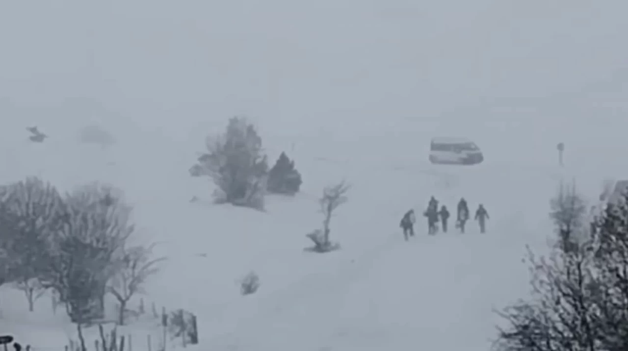 Serviste bulunan öğrenciler, minibüs ilerleyemeyince araçtan inerek evlerine yürüyerek ulaşmak zorunda kaldı. Yoğun tipi nedeniyle ilerlemekte güçlük çeken öğrenciler, zorlu bir yolculuğun ardından evlerine vardı.