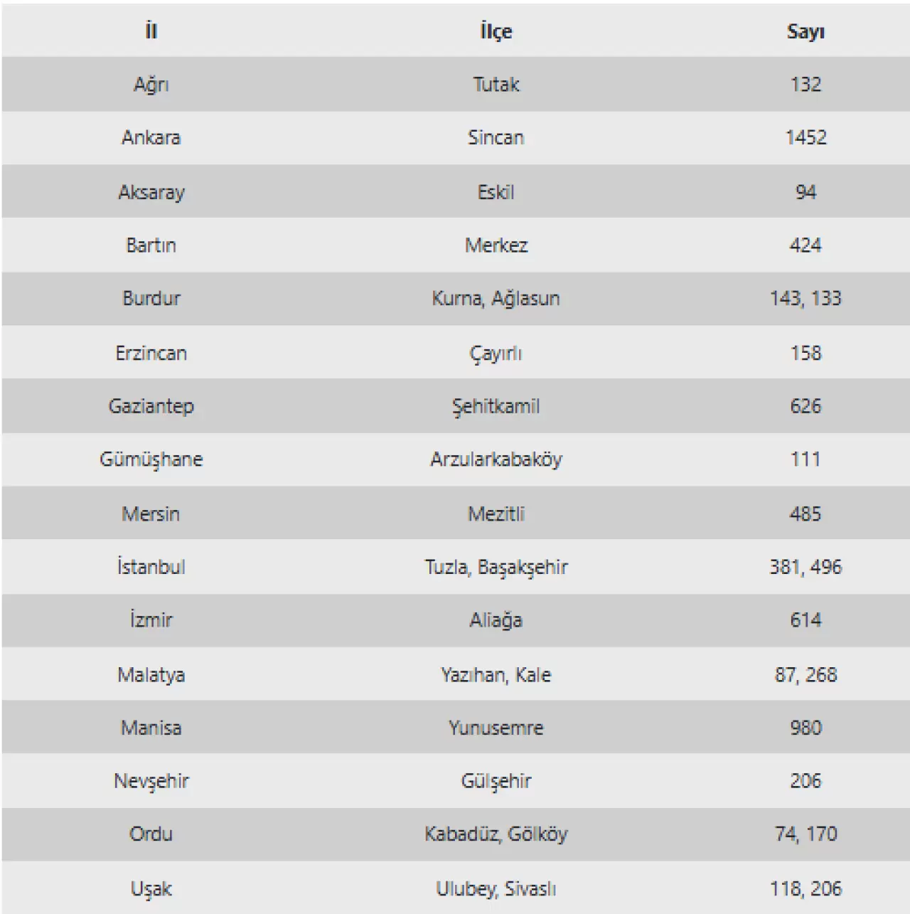Buna göre konut teslimi yapılan şehirler ve konut sayıları şu şekilde:
