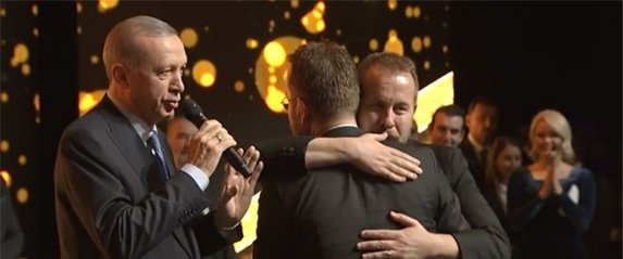 Gastronomi alanında ödül alan Ömür Akkor ile ikiz kardeşi Yunus Emre Akkor da ödüllerini Cumhurbaşkanı Erdoğan'ın elinden aldı. Sahnede geçen diyalog ise törene damga vurdu.