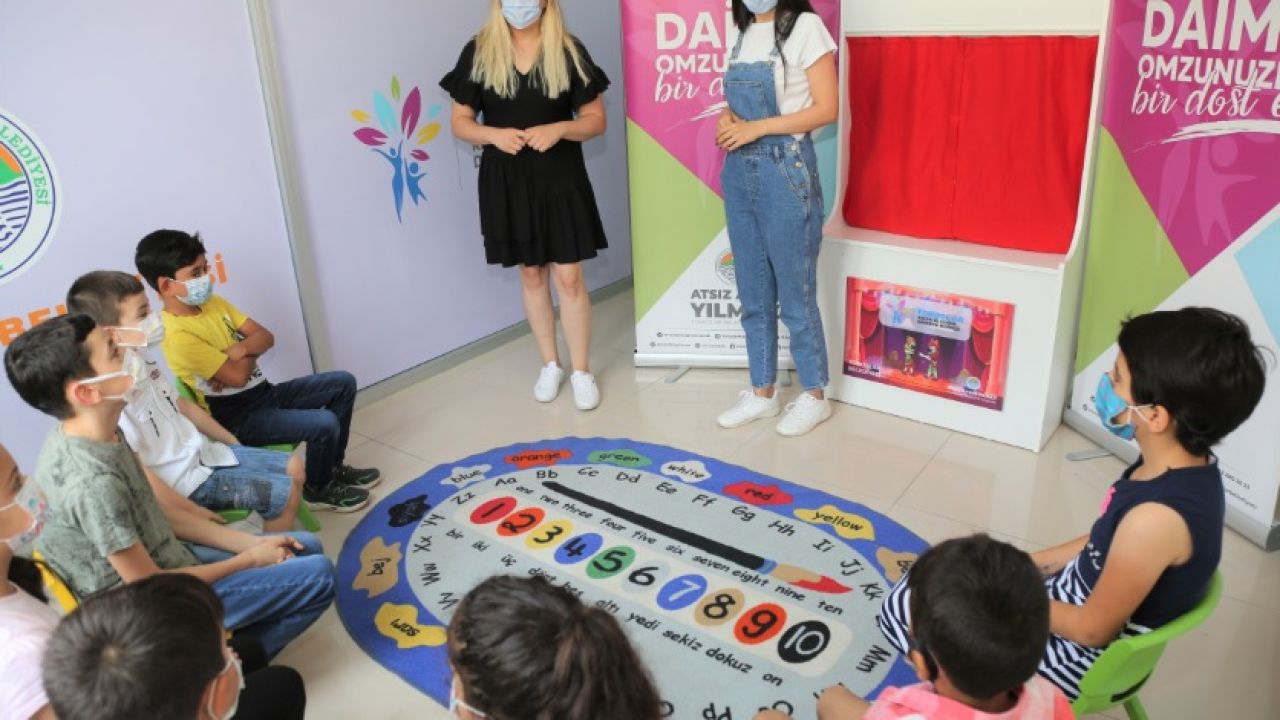 Alanında uzman psikologların ve okul öncesi öğretmenlerin görev aldığı Toroslar Kadın ve Çocuk Danışma Merkezi'nde yaşıtlarıyla bir araya gelen çocuklar, Evsiz Tavşan Kukla Gösterisini ilgiyle izledi.