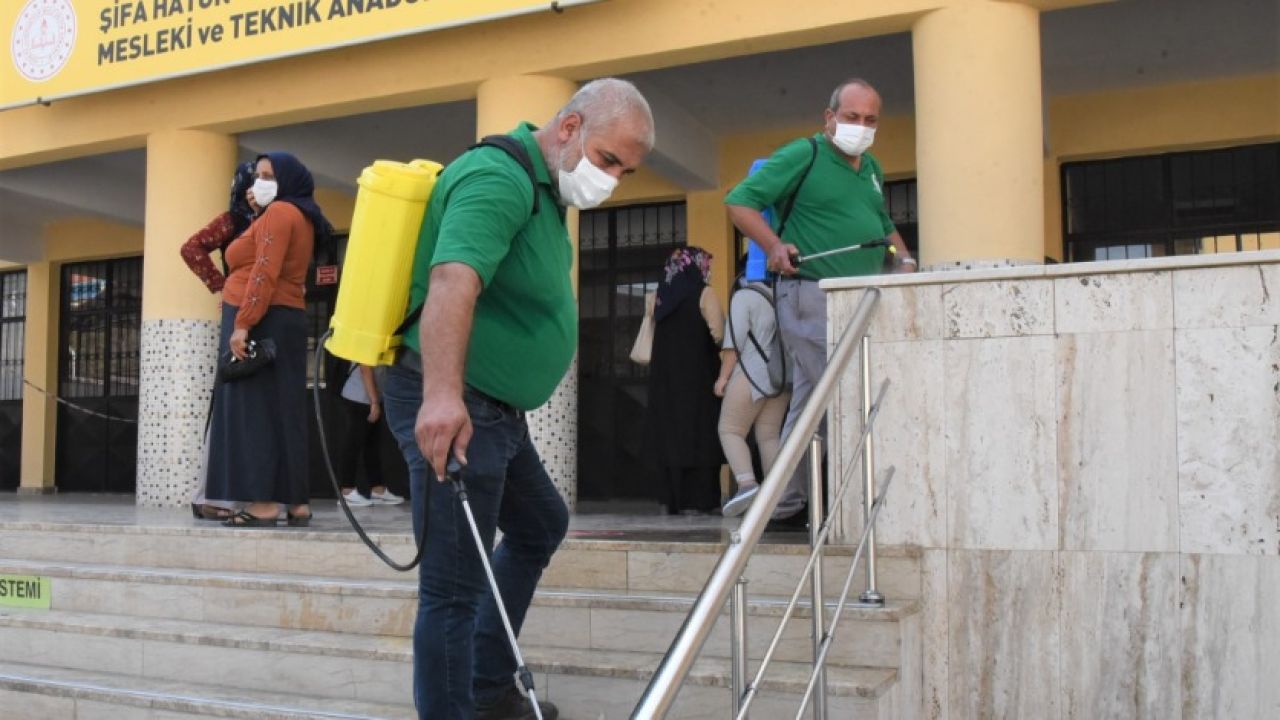 Temizlik İşleri Müdürlüğü'ne bağlı ekipler, süpürme ve yıkama işlemenin yanı sıra, öğrencilerin ve öğretmenlerin okullarda temas ettiği sınıf, koridor, tuvalet, lavabo ve kapı kolları gibi tüm alanların dezenfekte işlemini de titizlikte gerçekleştiriyor.