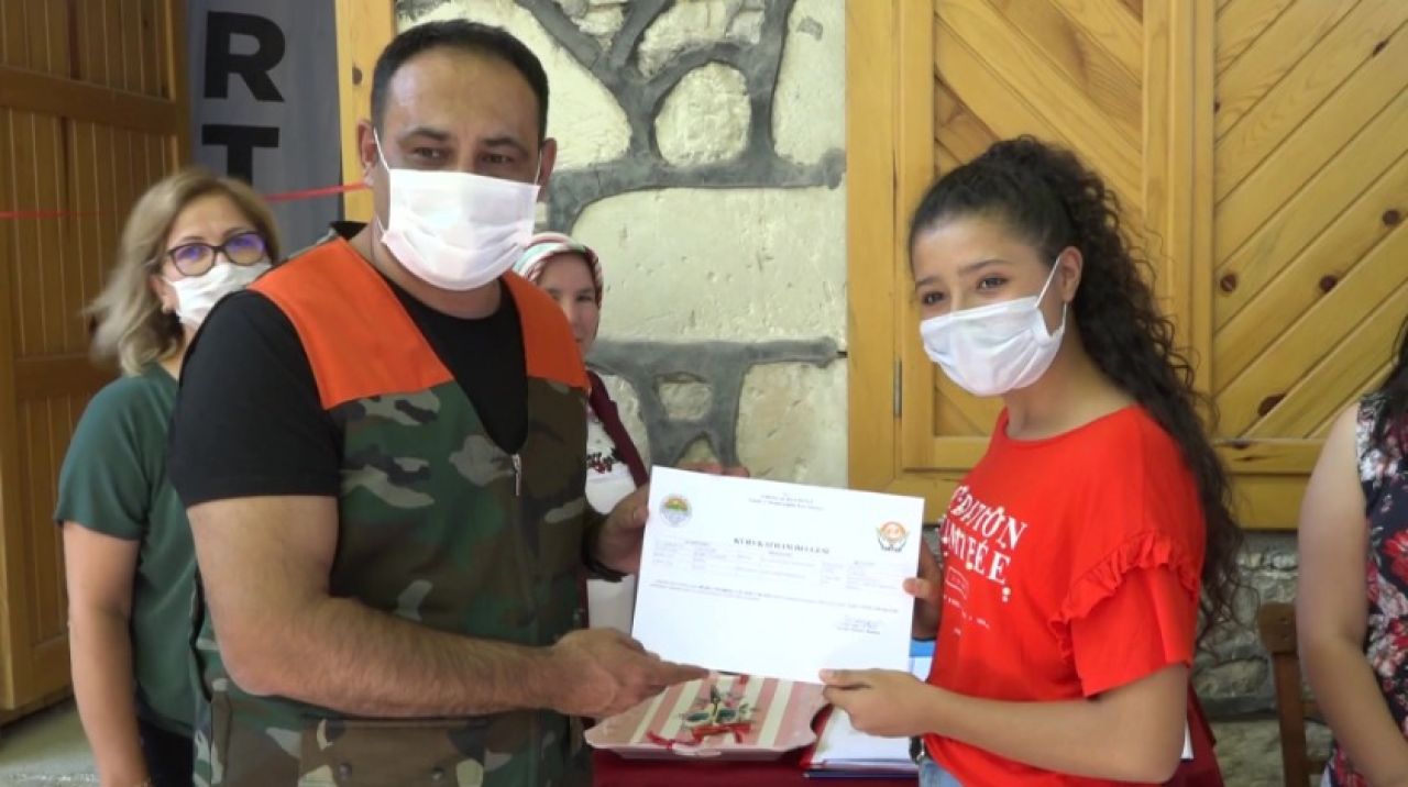 Yetişkinlerin yanı sıra çocukların da katılıp yaz tatillerini hobi edinerek geçirdikleri kursları başarıyla tamamlayan kursiyerlere sertifikaları, Toroslar Belediye Başkanı Atsız Afşın Yılmaz tarafından verildi.