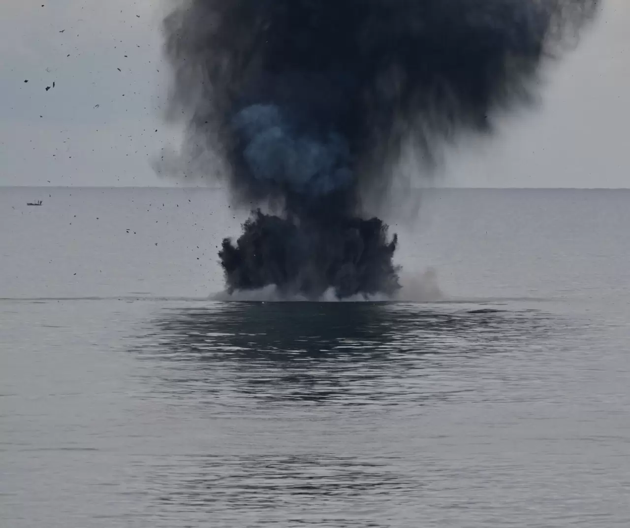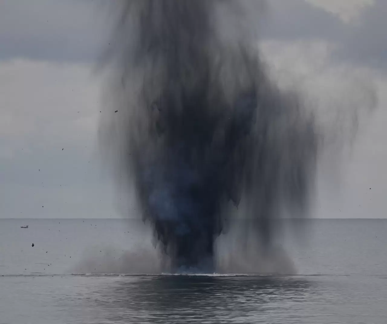 Yoroz Limanı’nda yapılan operasyon sırasında hem kıyıda hem de denizde geniş güvenlik önlemleri alındı. Patlayıcı madde uzmanlarının kontrolünde gerçekleştirilen imha işlemi sorunsuz şekilde tamamlandı.