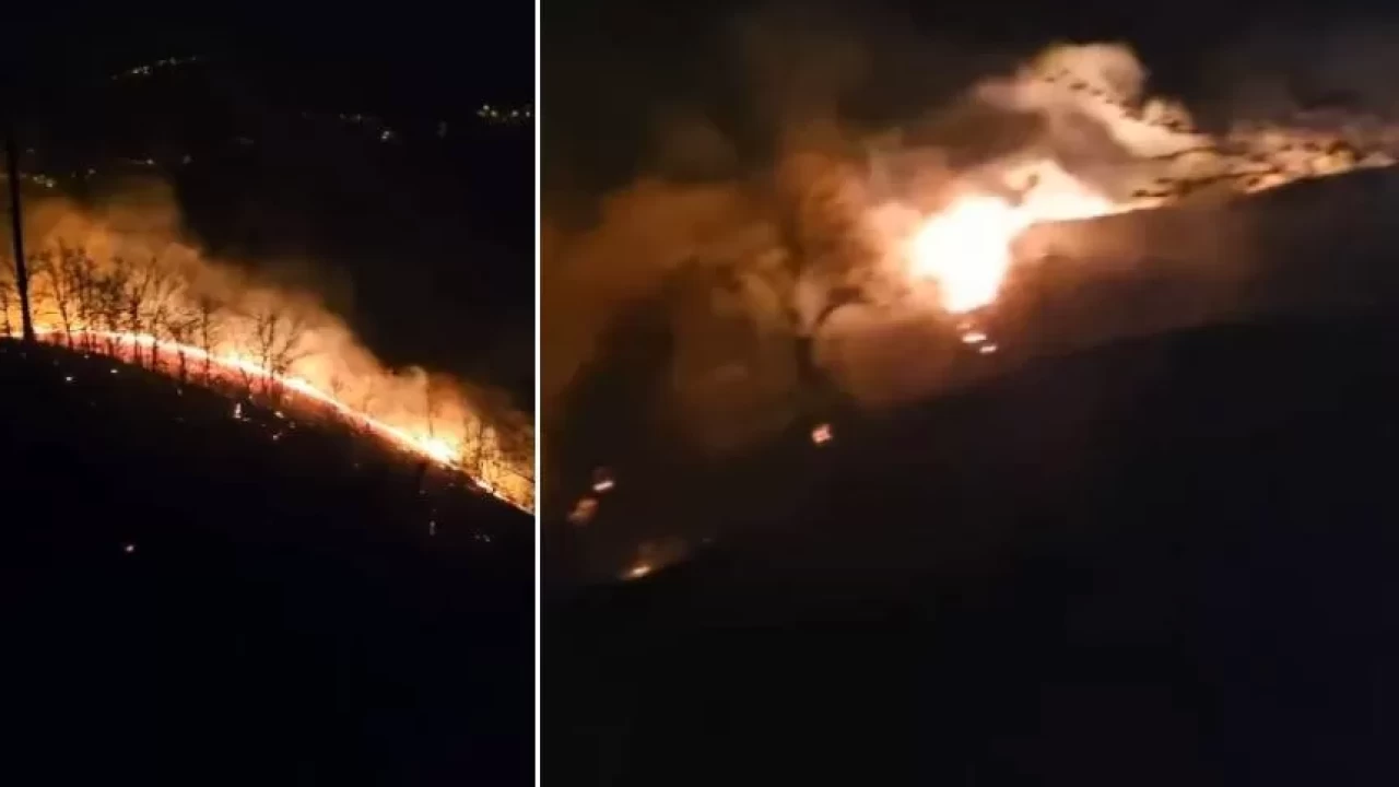 Trabzon'un Araklı ilçesinde yerleşim yerlerine yakın bölgede yangın çıktı.