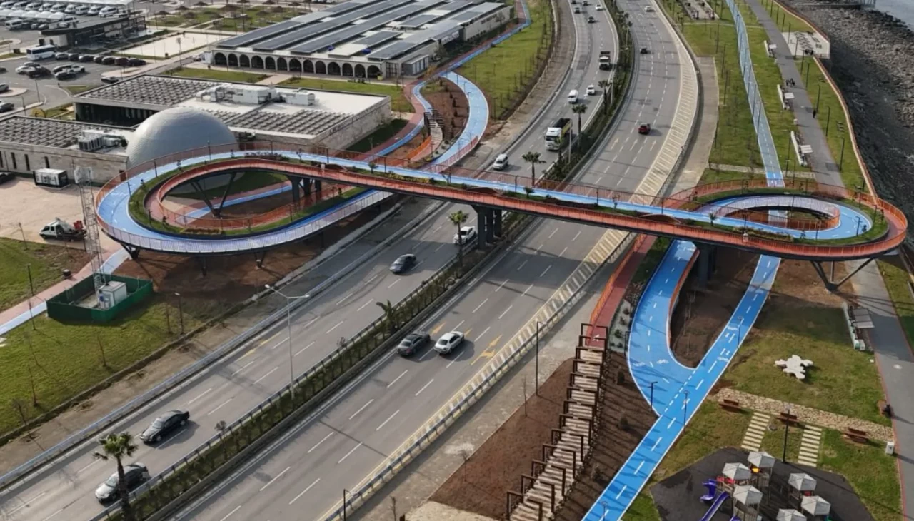 "Türkiye'nin 11. Ekolojik Köprüsü'nde 4 metre genişliğinde bisiklet yolu, 2 metre genişliğinde yaya yolu ile toplam 500 metrekarelik yeşil alan bulunuyor. Yoğun araç trafiğinin yer aldığı Karadeniz Sahil Yolu üzerinde yayalar ve bisikletliler için güvenli ve kesintisiz bir geçiş sağlayan proje, aynı zamanda yeşil alan düzenlemeleriyle kent estetiğine ve ekolojik dengeye katkı sunuyor."