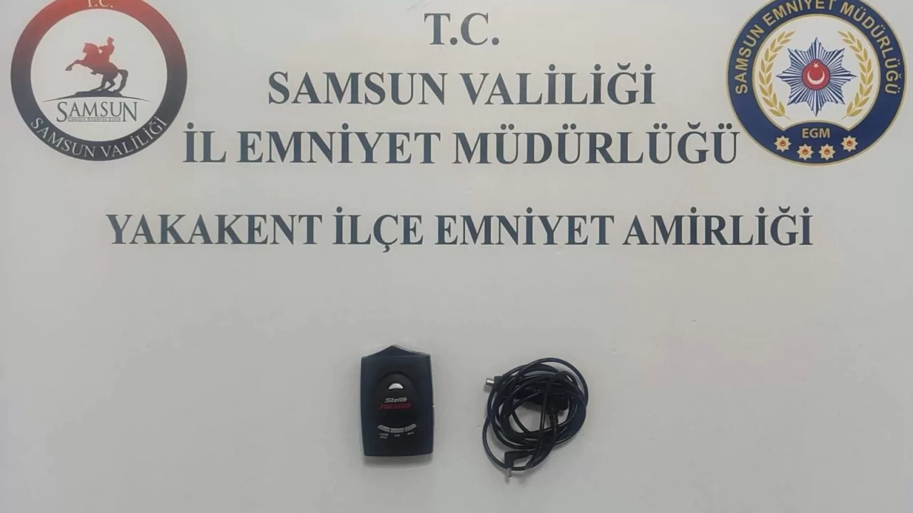 Samsun'un Yakakent ilçesinde, bayram tedbirleri kapsamında gerçekleştirilen trafik denetimlerinde şüpheli bir araçta yapılan aramada radar tespit cihazı bulundu. Yetkililer, sürücü hakkında adli işlem başlatırken cihaza el koydu.